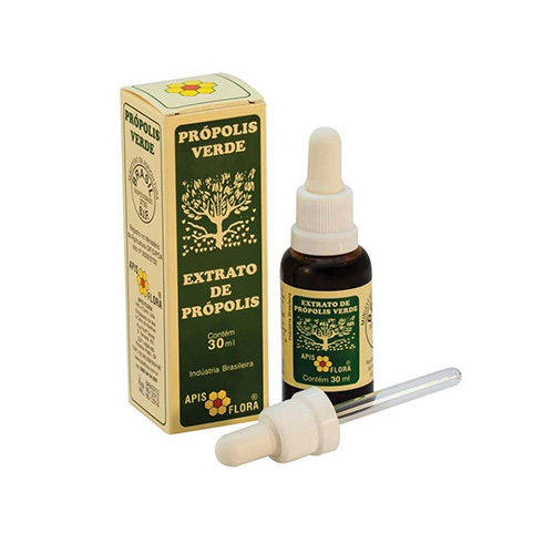 Extrato de própolis verde APIS FLORA é produzido com própolis verde da mais alta qualidade. Essa própolis especial é obtida a partir de uma planta nativa do Brasil, a Baccharis dracunculifolia (Vassourinha ou Alecrim do Campo). Trata-se de um produto amplamente estudado por pesquisadores no Brasil e no exterior, principalmente no Japão. Ela possui, além dos tradicionais componentes da própolis, alta quantidade de artepillin C, substância a qual pesquisas japonesas atribuíram grande atividade antitumoral.